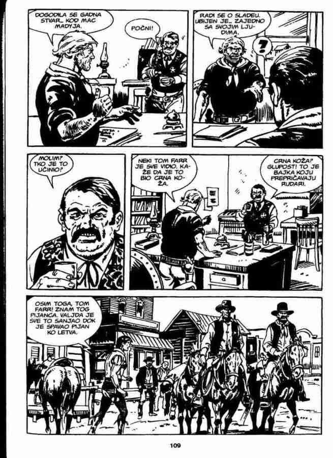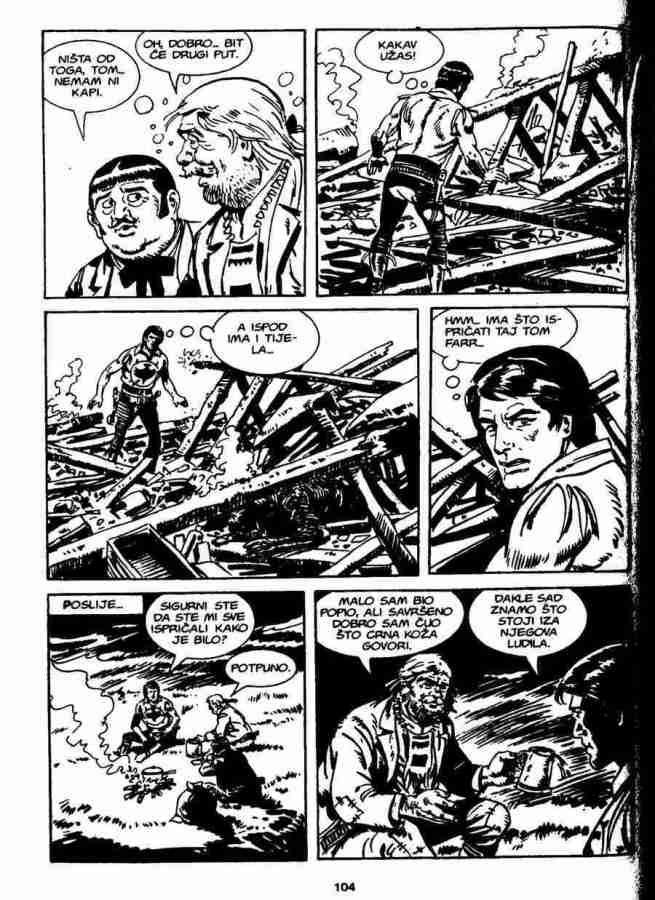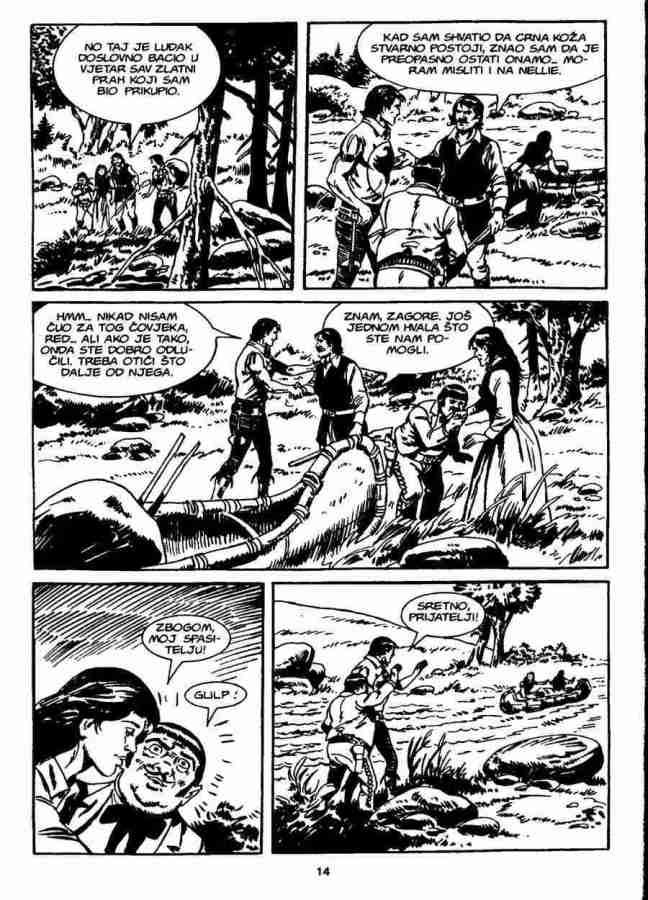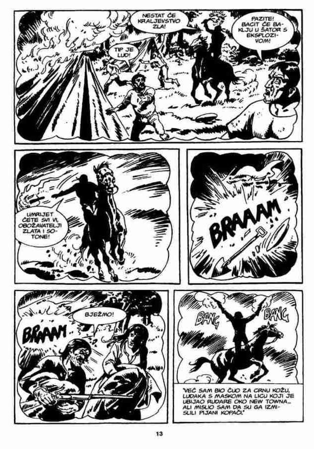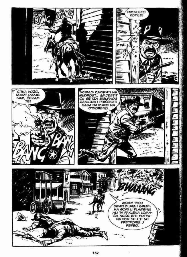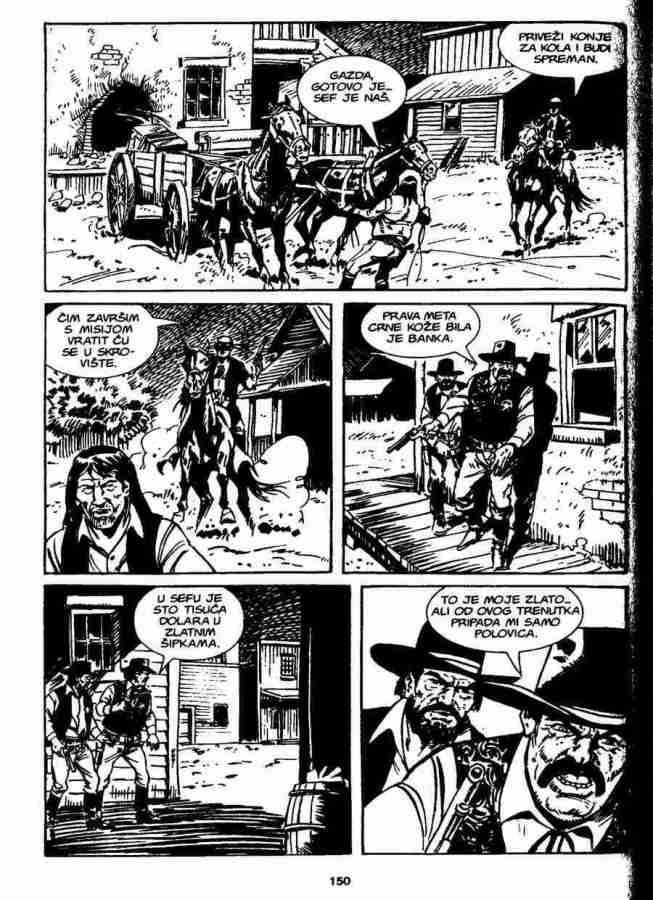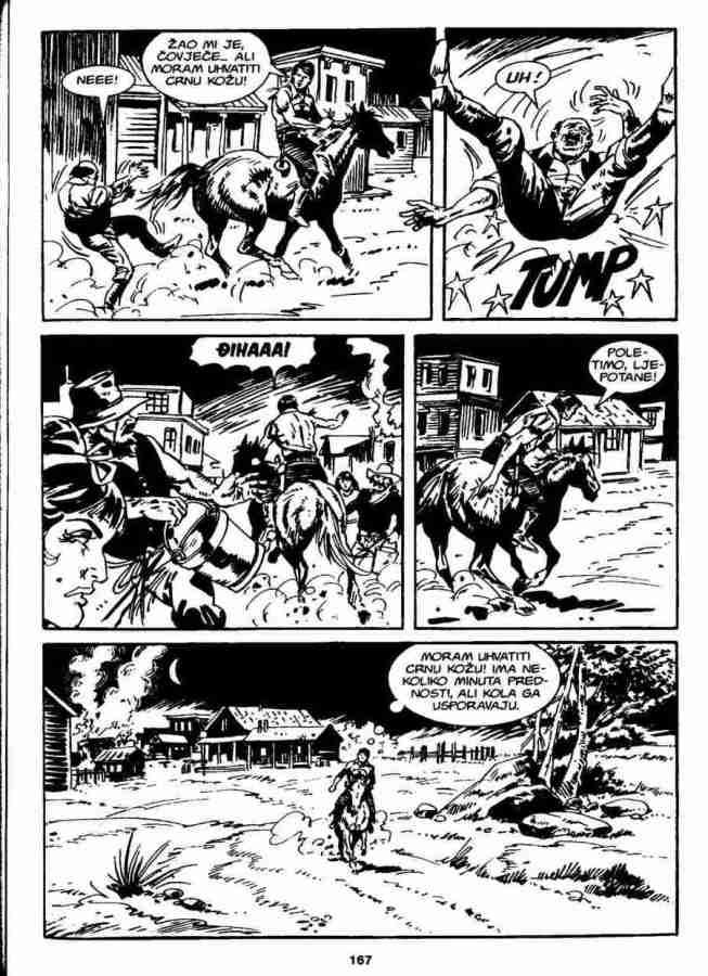 "Crna Koža"! Tako nazivaju tajanstvenog pojedinca (osvetnika), koji je sakrio svoj identitet pod maskom po kojoj je dobio ime. Njegovi su napadi divljački na sve koji se upuštaju u potragu za zlatom. Zagor otkriva razlog zbog kojeg se ,Crna koža' tako ponaša. Nemilosrdno je ubijena jedna žena, a trag je pokazao na ljude koje predvodi šerif Novog Grada...