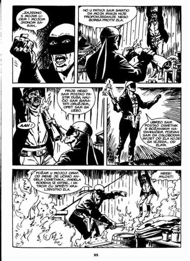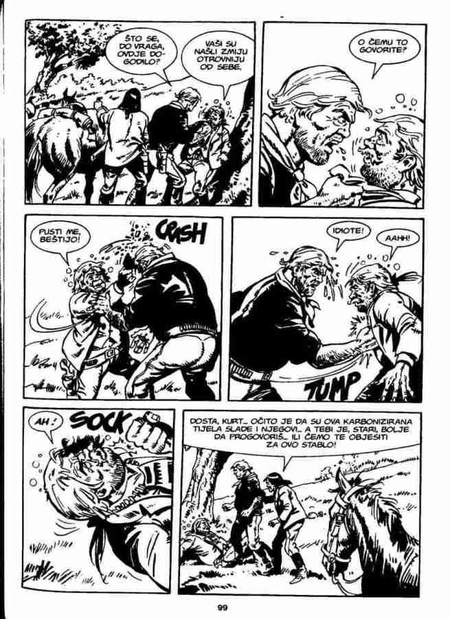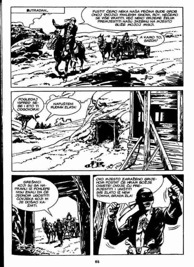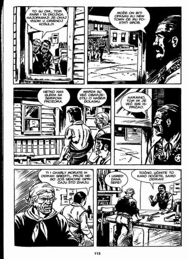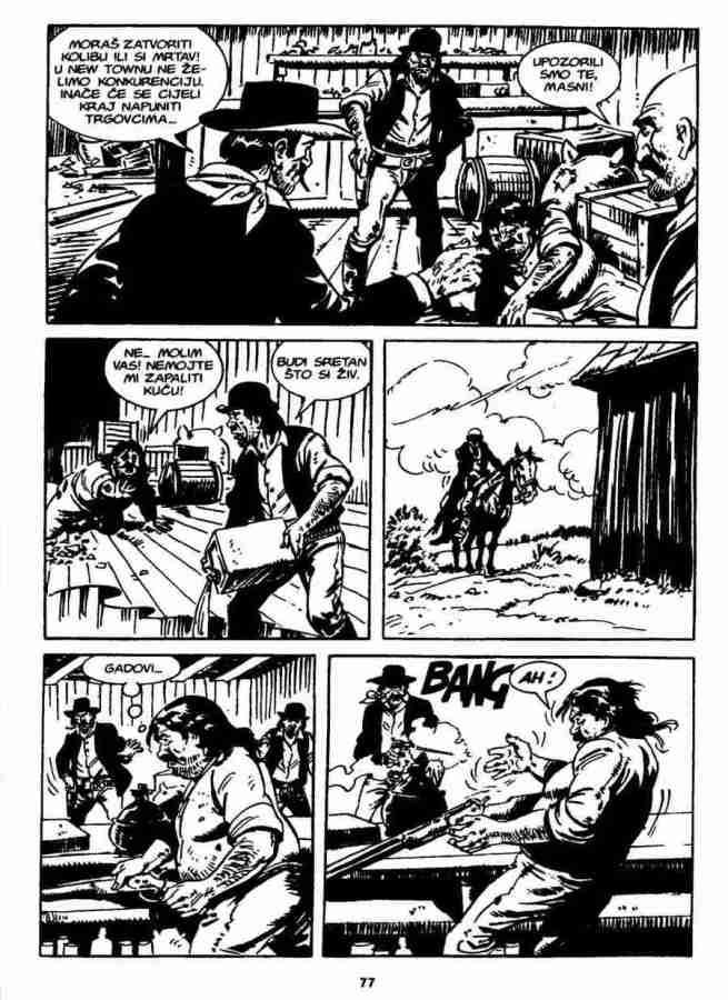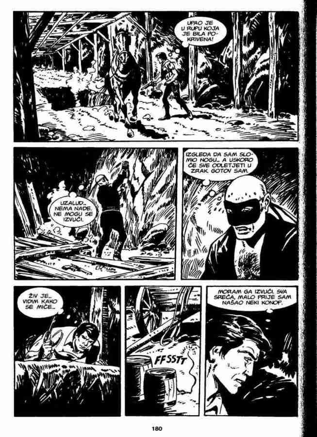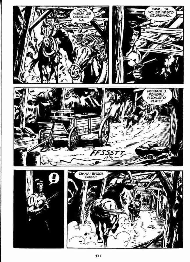 "Crna Koža"! Tako nazivaju tajanstvenog pojedinca (osvetnika), koji je sakrio svoj identitet pod maskom po kojoj je dobio ime. Njegovi su napadi divljački na sve koji se upuštaju u potragu za zlatom. Zagor otkriva razlog zbog kojeg se ,Crna koža' tako ponaša. Nemilosrdno je ubijena jedna žena, a trag je pokazao na ljude koje predvodi šerif Novog Grada...