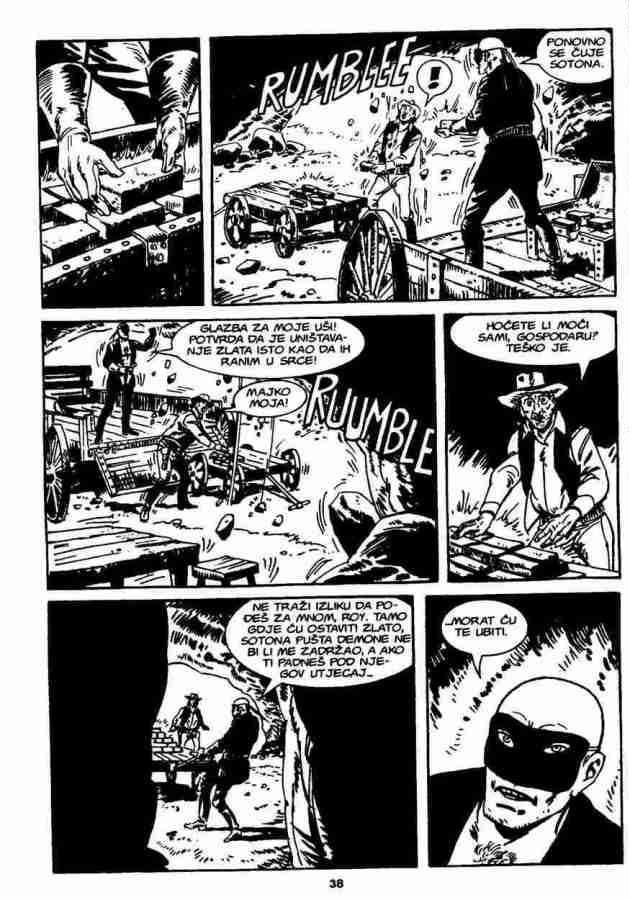 "Crna koža", tajanstveni osvetnik, sa maskom nalik na Zoroa, nemilosrdan je i okrutan. Po njegovom dubokom uverenju, zlato je izvor svakog zla i zato je odlučio krenuti u misiju uništavanja i ubijanja svih onih koji imaju bilo kakve veze sa tim metalom. Zadatak kome se posvetio mu je solidno išao od ruke, sve do trenutka kad se njegov put ukršta sa putem Zagora, Duha sa sekirom. Gospodar Darkvuda, čovek visokih moralnih vrednosti njegov način postupanja, sa ljudima koji padaju pod uticaj žutog metala, sigurno ne može trpeti, bez obzira na razlog koji nekoga tera da to čini… Kao i mnogo puta ranije, sledi veća bitka, a kako će sve skupa završiti pročitajte u ovoj priči, koji je treći Zagor Maxi po redu.