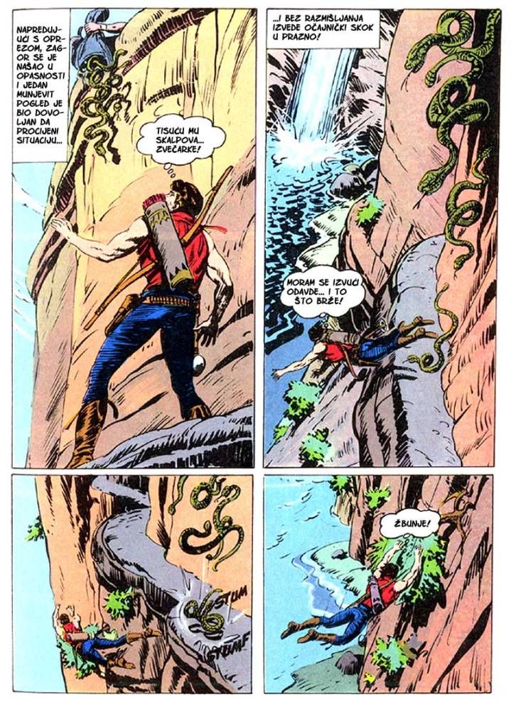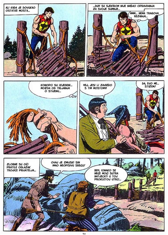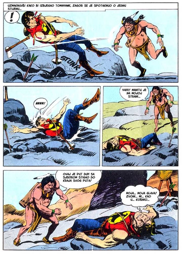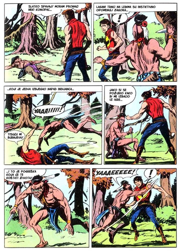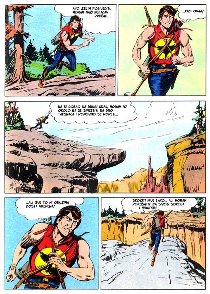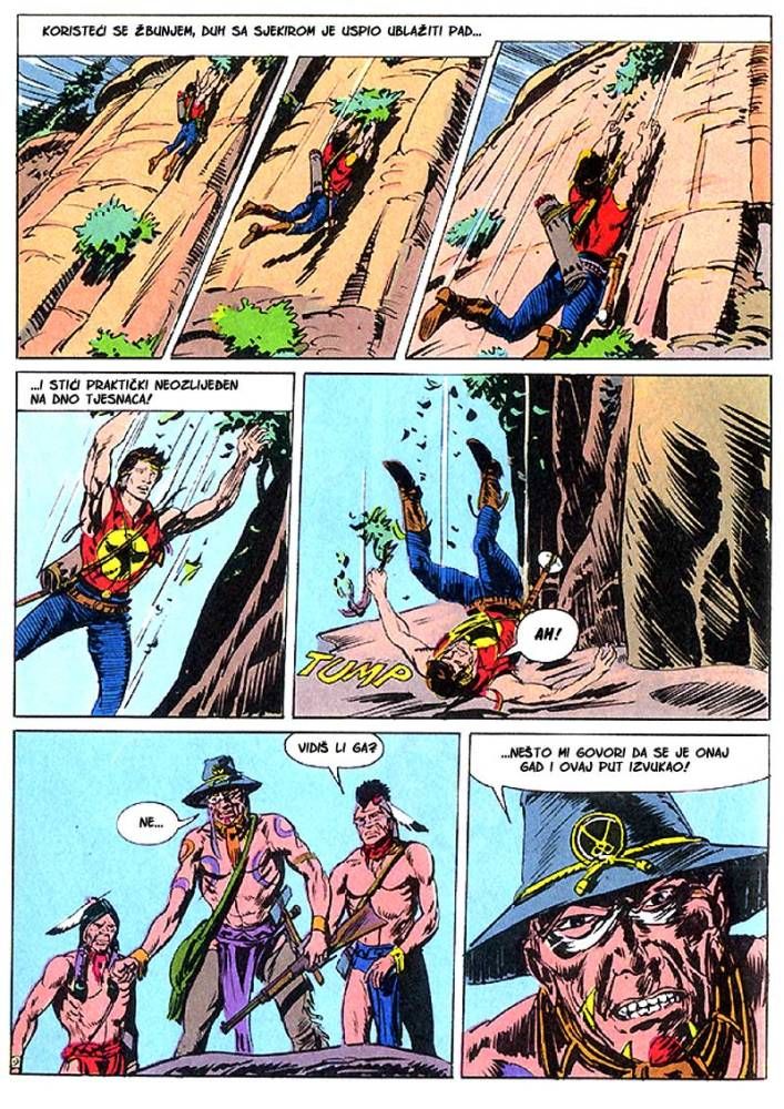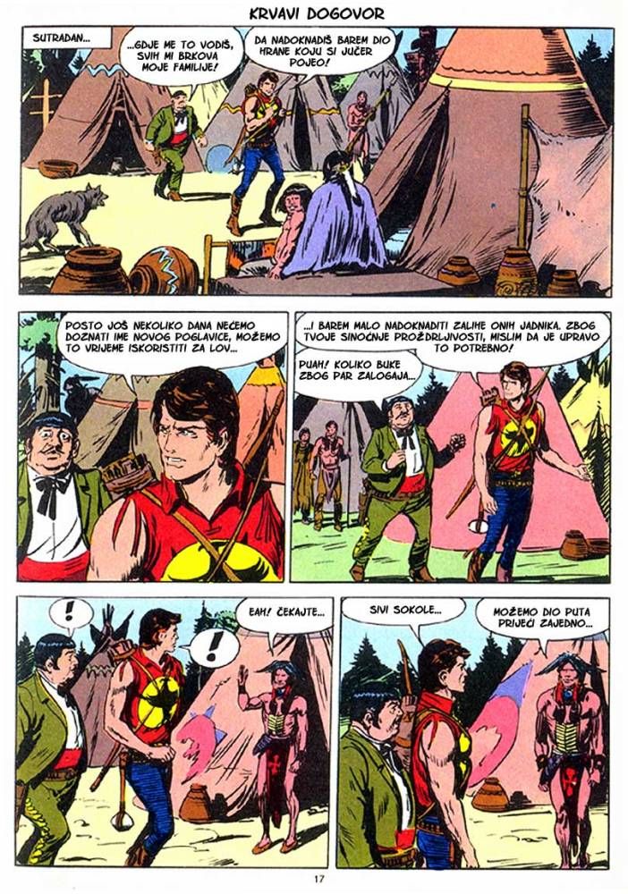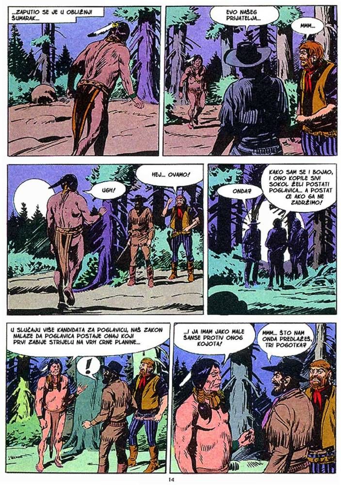 Kada umre dobar poglavica, kao što je to bio ,Medved koji hoda', na njegovo mesto potrebno je da dođe sposoban ratnik koji bi nastavio da vodi pleme na način kako je to činio njegov predhodnik. Ali ako ima više kandidata onda izbor za najboljeg zavisi od običaja plemena. Za pleme Hidatsa taj izbor se svodi na odmeravanje snage i spretnosti (veštine) kroz dvoboj koji oni nazivaju ,Trka sedam strela'! Tristoti broj koji je izašao u serijalu o Zagoru ne razlikuje se dosta od mnogih ranijih epizoda, osim po tome što je bio u boji. Ipak za priču koja je stala na stotinak strana može se reći da je solidno urađena. Nema nekog dužeg uvoda kakav je uobičajen za redovne epizode, pa se već na samom početku kreće sa akcijom koja će biti prikazana u ovih stotinak strana. Po tome se može reći da je Tonineli napravio solidnu priču za jubilarni broj. Kvalitet ove priče sigurno je da zavisi i od autora crteža, a kako je to bio F. Galieno koji je jedan od najboljih autora, onda je ova priča sa kvalitetnim crtežom imala realni priliku da se prikaže u dobrom izdanju.