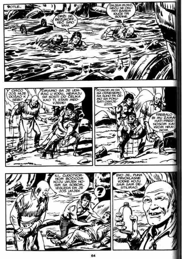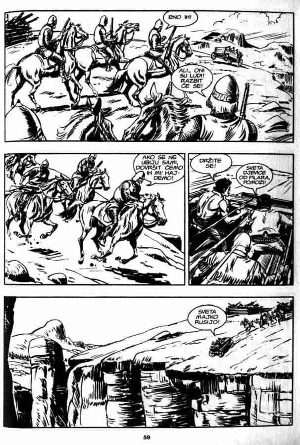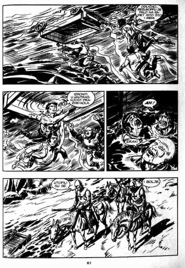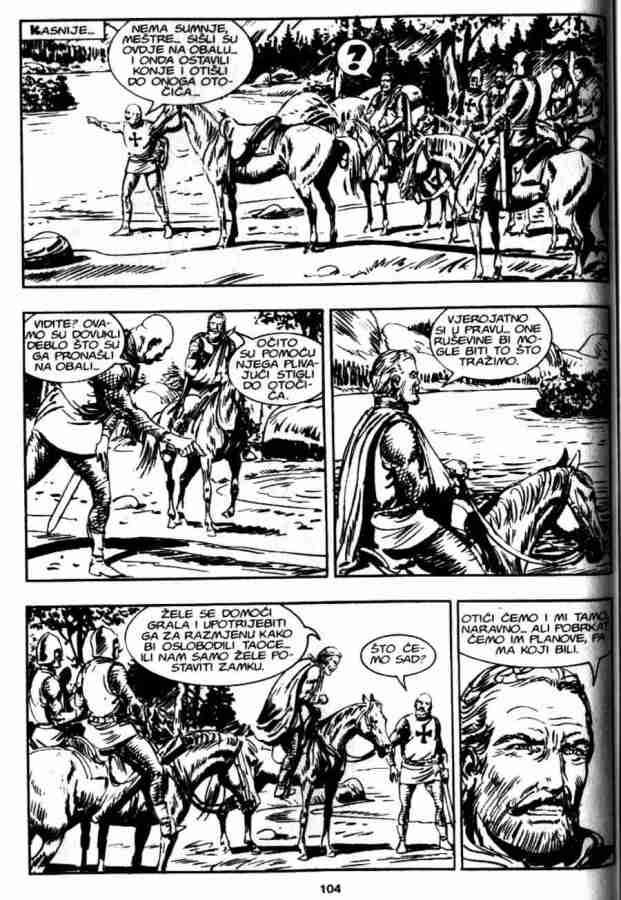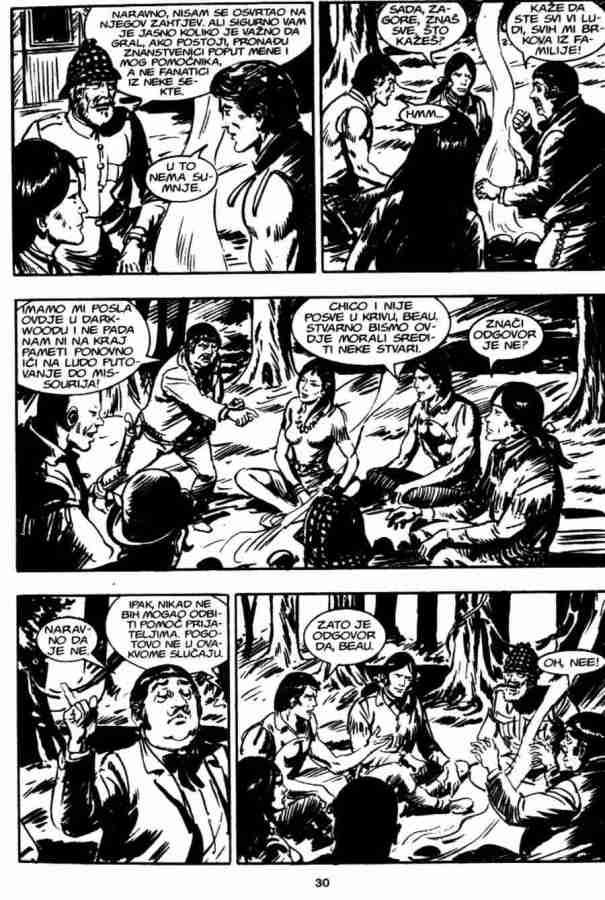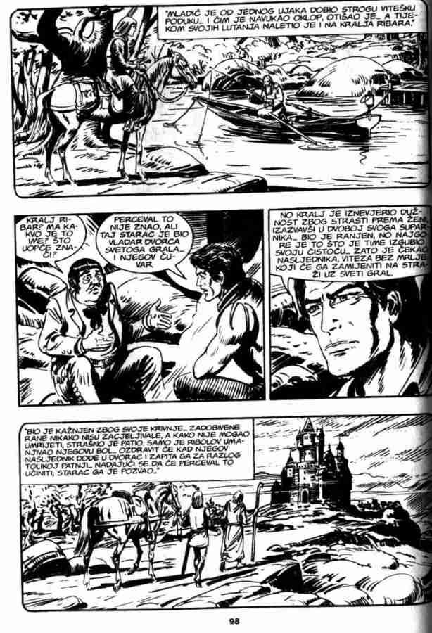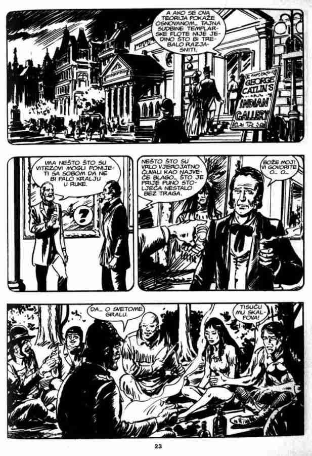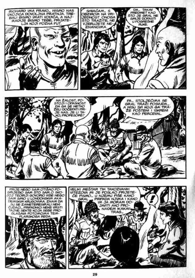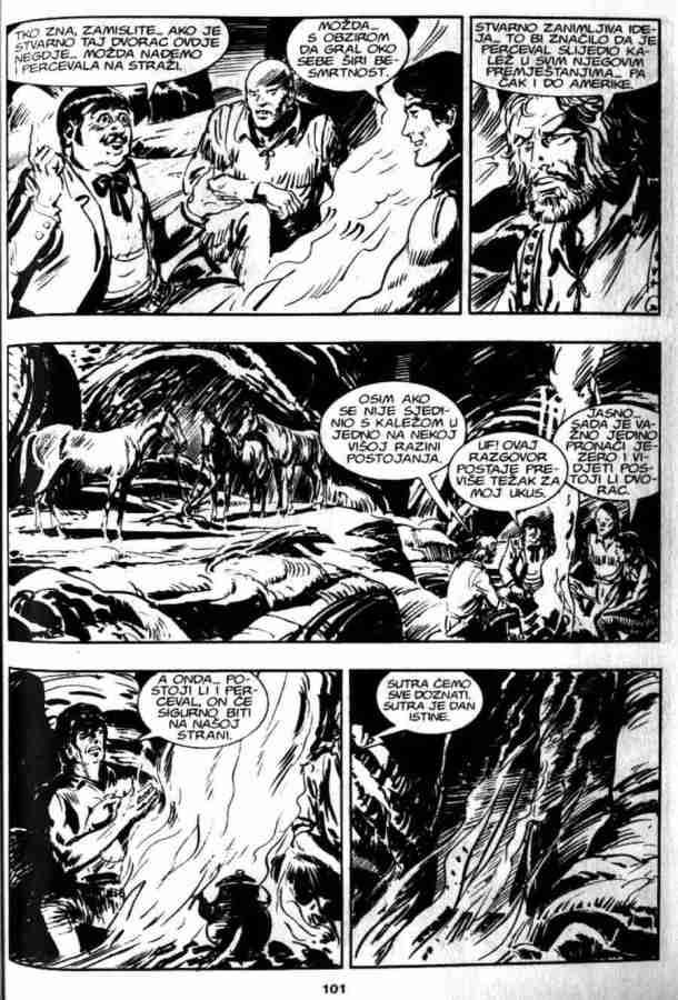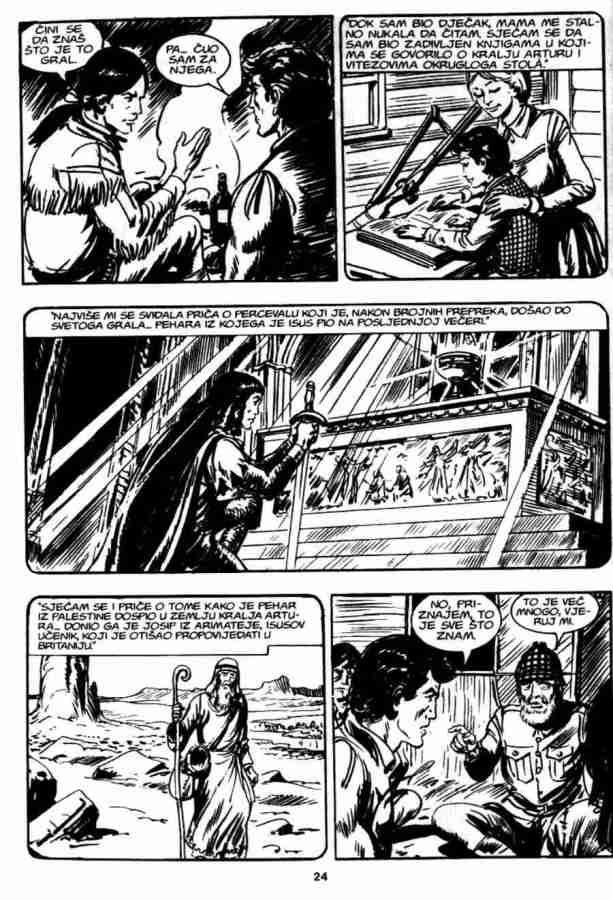 Ovo je pria koja sigurno ostaje u seanju, ukljuuje istorijske injenice, neke legende, kao i neto simbolike. Da bi sve jo uverljivije izgledalo ukljueni su u priu Indijanci Mandani, lord Bo Vindam, Ki-noah i stari Rus Bezukof, pa je tako na stranu Zagora i ika bilo jo nekoliko saboraca. No kao i uvek kad se radi o gralu, sveti pehar je glavna linost u ovoj prii. Zagor je tu stalno prisutan, ali nije osnovna tema. Panju stalno odvlai mogui pronalazak grala, pa je Zagor povremeno sporedan.