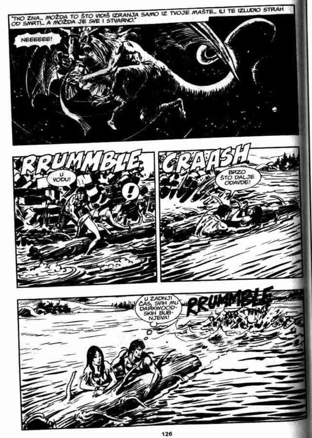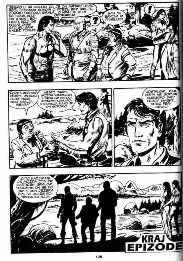 Dotakavi se poznate teme Buratini je uvod prikazao kroz Zagorovo (dobro) seanje iz detinjstva i prie njegove majke. U ovoj avanturi Zagor nije samo ovek iz ume nego govori kao poznavalac legendi o Arturu. No da se ne bi radikalno izmenila predstava od Duhu sa sekirom on govori da je to malo, ipak je sve to zna. Simbolika je ono to je neizbeno za zaplet u ovim temama. A Buratini se jo jednom iskazao na delu kada je izmenio Zagorov nastup. Akcija na obali posle odlaska velikog metra sa vitezovima u kamenu kulu na sredini jezera moda je iznenaenje. Od Zagora ranije se oekivalo neto drugo, ali promena autora uinila je i promenu u ponaanju i karakteru likova. Kraj donosi dvostruku simboliku: gral ne moe pronai niko sa loim namerama, kao i saznanje o postojanju stalnog uvara. On e se ponovo u sluaju potrebe, zajedno sa gralom sjedinjeni na viem nivou postojanja i pojaviti u svetu, te tako biti spremni u borbi protiv zla.