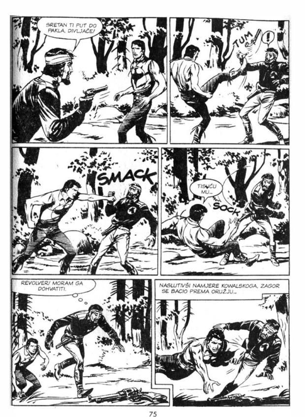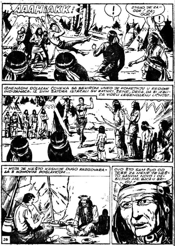 *Prvi strip Zagor koji je objavljen na prostorima bivše Jugoslavije, 13.09.1968. godine. Nasilje u Darkvudu kao prva epizoda u Z. S. svrstava se u stare kultne epizode. Kasnije se ova epizoda nikad nije ponavljala (osim strip razonoda, koji je bio malo zapažen) iako je priča dobra, pa je iz tog razloga postojalo uslova za to. U svom prvom izdanju radilo se veliko skraćivanje broja stranica, pa su čitaoci ostali uskraćeni za rasplet i kraj priče. Kako su u S. Z. od prvog broja počeli sa brojem strana od 128, izgleda da je bilo previše da objave strip na preko 180 strana. Uz to nisu hteli da prva epizoda ide u nastavcima. No moglo je biti i drugih razloga... Zagorove rane epizode su bile drugačije, zato što tada teme kao ratovi sa indijancima nisu bile hiljadu puta viđene u stripu, pa su zbog toga i bile zanimljive. Kasnije je to postalo dosadno zbog čestih ponavljanja. ,Nasilje u Darkvudu' je Dnevnikov prevod naslova umesto originalnog Rat. No kao prvi broj (naslov) on je ostao upamćen i to izgleda kao dobar izbor. Sama epizoda zaslužuje solidne ocene, jer priča je dobra, naravno ako se računa cela priča sa krajem.